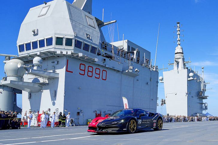 Nave Trieste is Italy’s most advanced aircraft carrier, a symbol of national pride. Hosting a Ferrari on its flight deck was a moment that tied together speed, technology, and Italian engineering in one flashy statement. Navy personnel watched the event unfold with just as much excitement as the Ferrari fans.